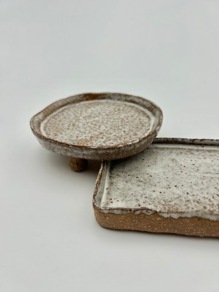 Realizzato in grès rosso cotto ad alta temperatura, smaltato con bianco pirite. Diametro 11 cm circa.